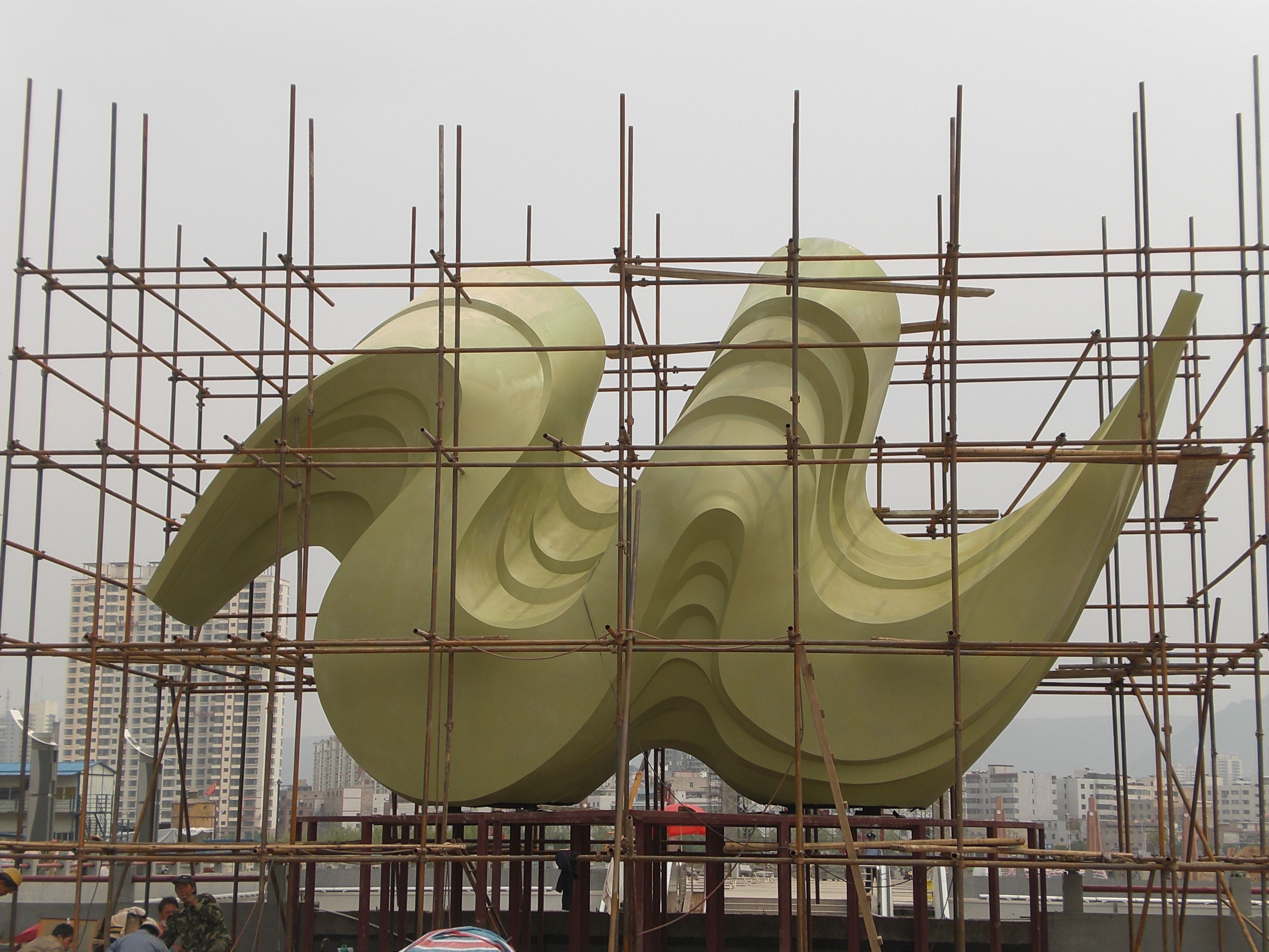 3、对于中型、大型雕塑需要辅助工具进行协同安装;